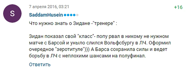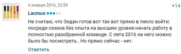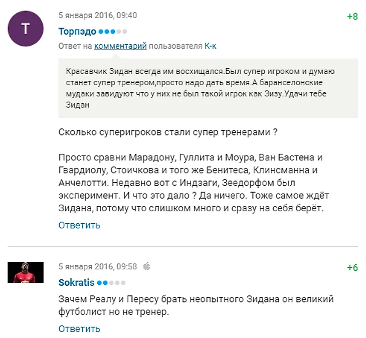 Ну что за бред? Какая нафиг Томь? Зидан лучший вариант для нынешнего Реала, это показывает время и результаты. Реала! Понимаешь? Все, что он сейчас делает, приносит только профит, значит делает он все правильно.