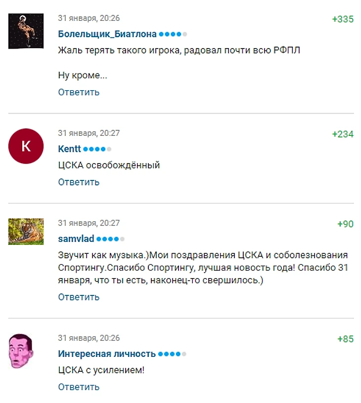 Комменты под новостью о том, что Траоре переходит в «Спортинг» (31 января 2017 года)