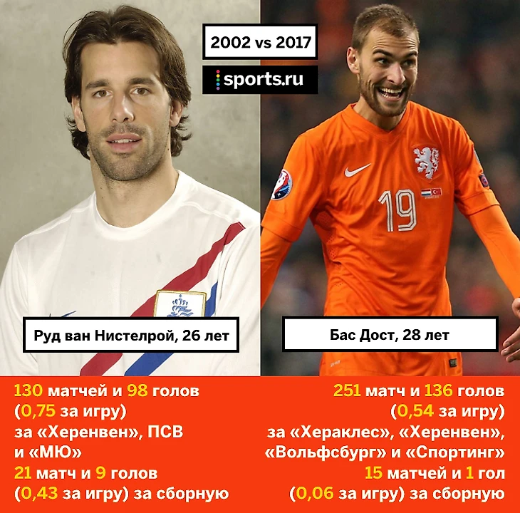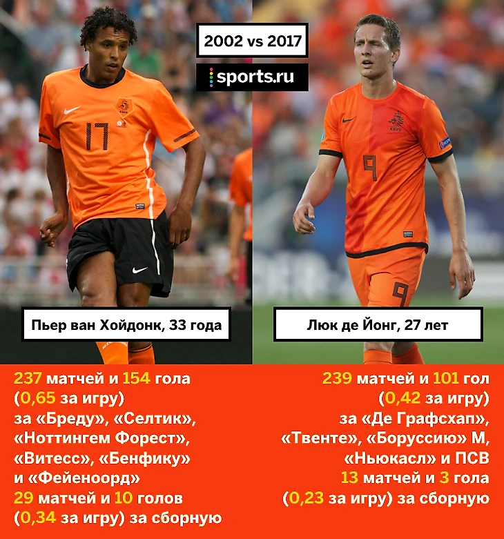Ниже – сравнение центральных нападающих, вызывавшихся в сборную в 2002-м и 2017-м.