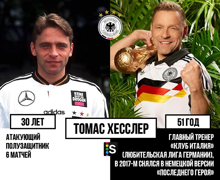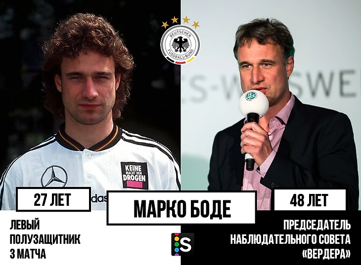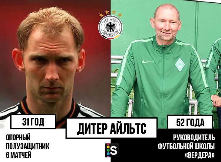 Были в заявке, но не сыграли: Оливер Кан (27 лет, вратарь), сейчас – 48 лет, телеведущий и комментатор, Оливер Рек (31 год, вратарь), сейчас – 52 года, главный тренер «Оффенбах Киккерс» (Д4, Германия), Рене Шнайдер (23 года, центральный защитник), сейчас – 44 года, спортивный директор «Ганзы» (Д3, Германия), Марио Баслер (27 лет, правый полузащитник), сейчас – 48 лет, главный тренер «Рот-Вайсс Франкфурт» (Д5, Германия), Йенс Тодт (26 лет, опорный полузащитник), сейчас – 47 лет, спортивный директор «Гамбурга».