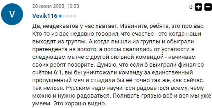 «Чуть не поломал товарища, который нашу сборную «г***онами» обозвал». Что писали на Sports.ru после Евро-2008