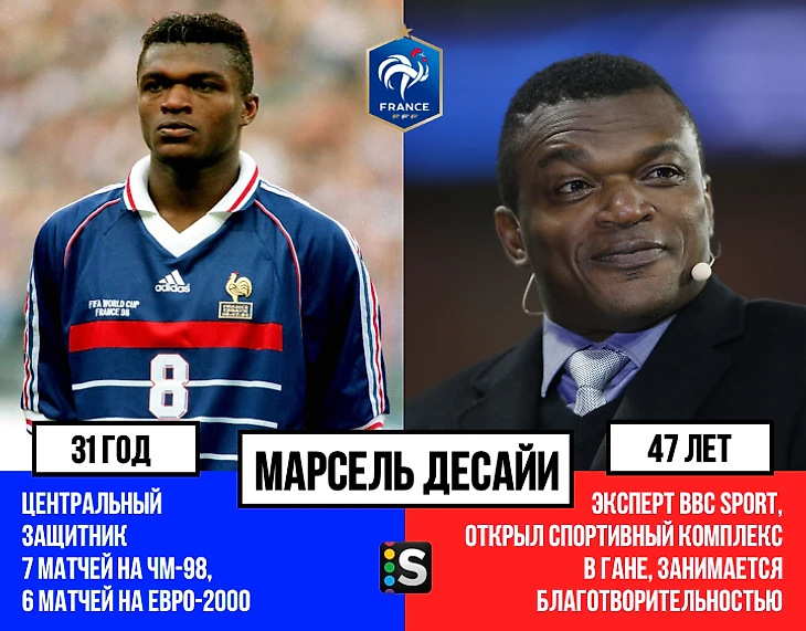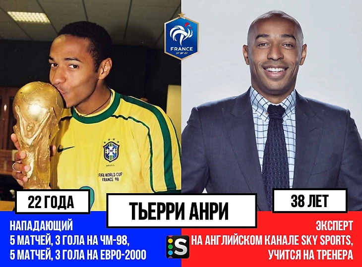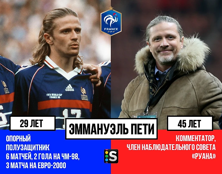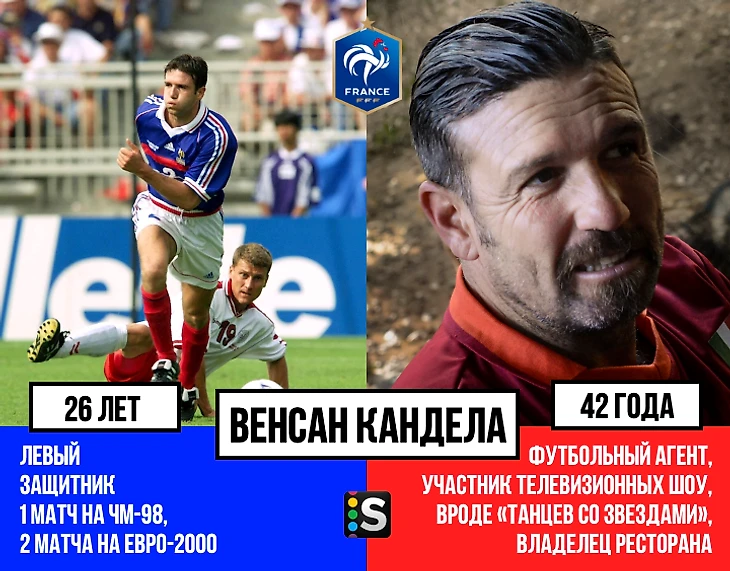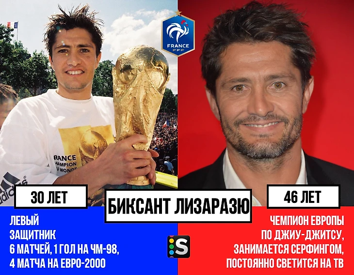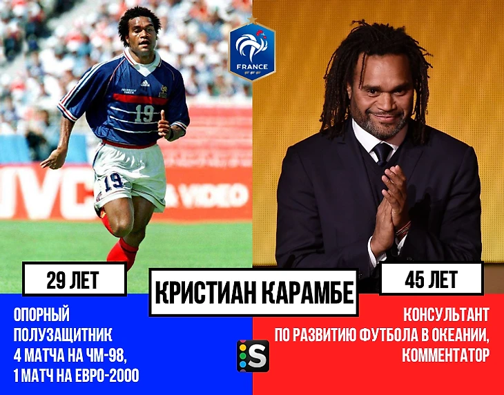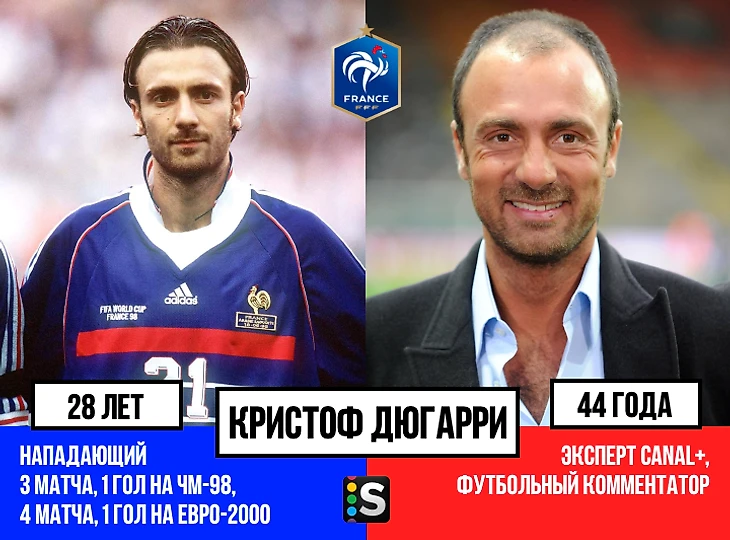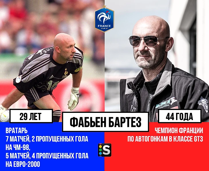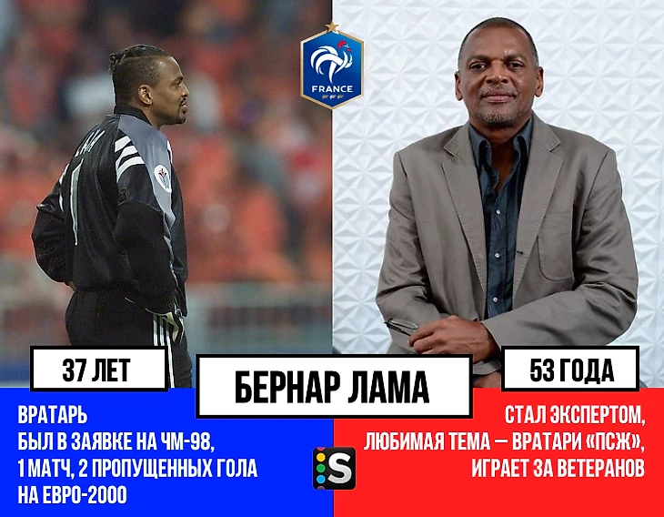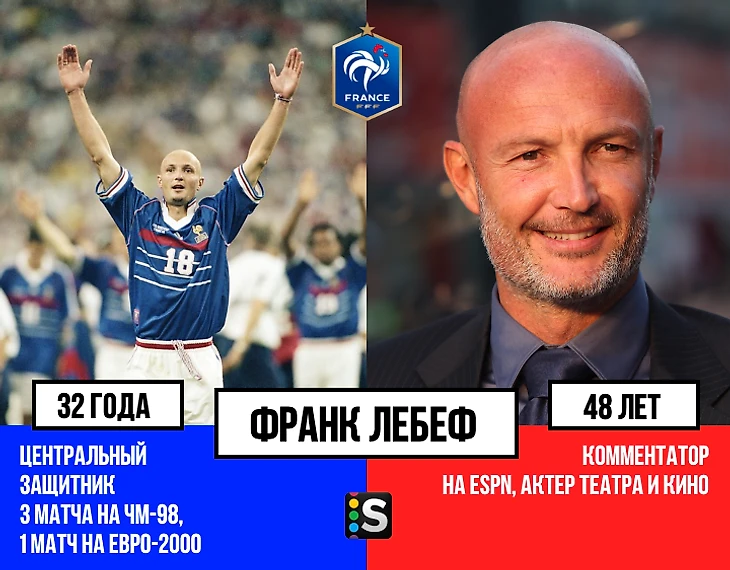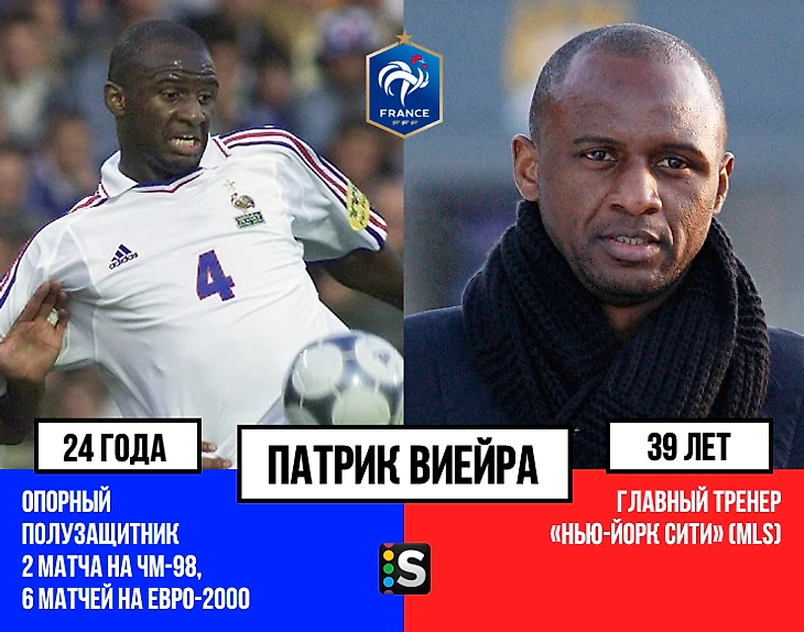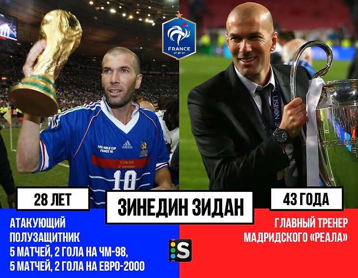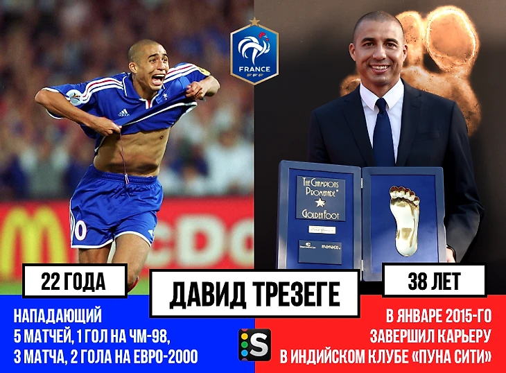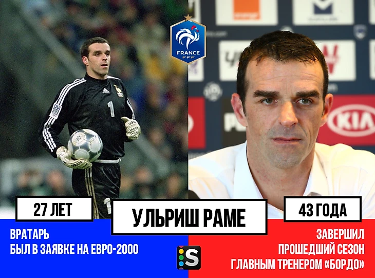 Примечание: возраст на левой табличке указан на момент финала Евро-2000. У тех, кто не играл на чемпионате Европы, возраст указан на момент финала чемпионата мира.