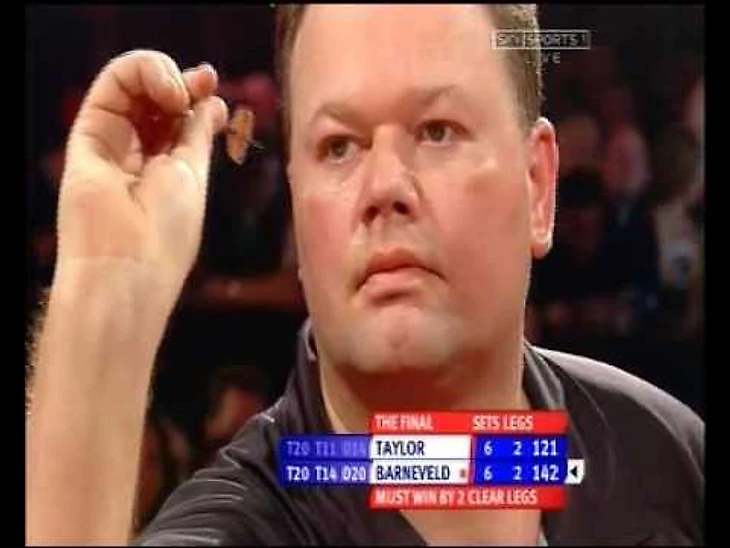 Правда, поначалу матч получался однокалиточным. Тэйлор молотил как из пушки, не давая Барни высунуть голову — за первые три сета Фил отдал всего один лег, а РВБ не закрыл 167. При счёте 0-3 голландец попытался реабилитироваться и выиграл два последующих игровых отрезка, при этом оформив максимальный чекаут — 170!