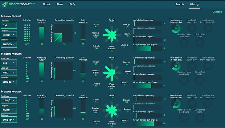 Между строк. Есть такой сервис smaterscout. Он новый, но у него очень интересная идея. В общем, все слышали фразу "он отлично играет в Италии, но что с ним будет в Англии?". Этот сайт(понятия не имею как) переносит данные с одного чемпионата на другой и сравнивает их. Суть в том, что с точки зрения атаки Маунт был готов к Англии, ещё играя в Витессе(вторая строка). В Дерби он очень сильно прибавил в роли центрального полузащитника с точки зрения обороны. Можете зайти и поиграться. Например можете посмотреть, готов ли Джеймс к АПЛ. Спойлер: и да и нет. Если что, это не реклама(к сожалению). Просто ещё один способ подтвердить свою точку зрения.
