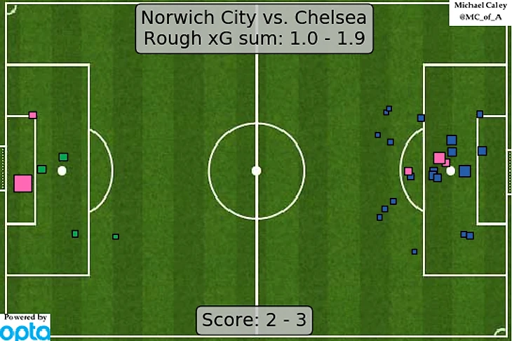 Норвич не сделал за тайм почти ничего, но при этом забил 2. Челси очень много тратил моментов впустую, которые надо было бы забивать. Классический первый там, на самом деле. Дыры в обороне, но большое количество моментов впереди.