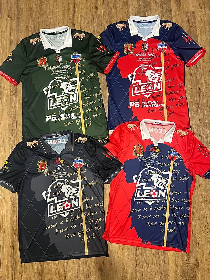 Также клуб часто проводит тематические матчи, к которым подготавливает специальную форму для игроков и различную атрибутику на выбранную тему. Отличный пример это «дерби купюр» с ярославским «Шинником», где клубы стилизовали форму под купюры 10₽ и 1000₽ на которых изображены Красноярск и Ярославль.