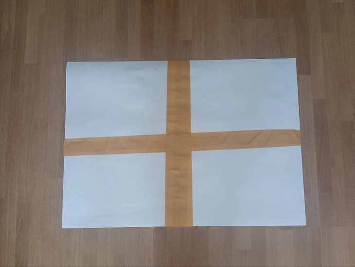 Первым делом скрепил четыре листа формата А3 и закрепил их скрепками.