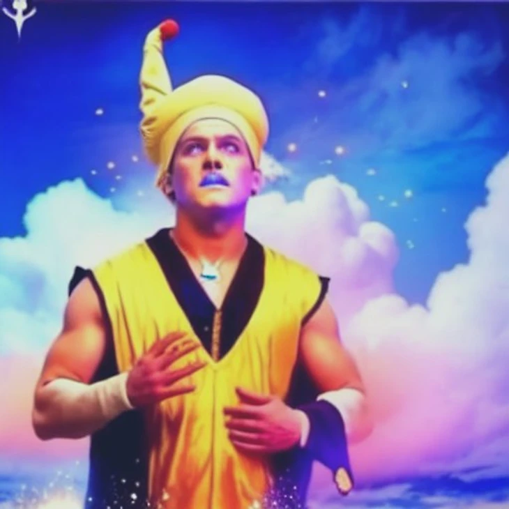 Синий Губерниев назывался джинном. Но джинном он не являлся, он просто обмотался тканью, а в видео-редакторе его перекрасили в синий цвет и отрегулировали аудио-дорожку, чтобы сделать голос ниже. То есть, организаторы зрелища даже особо не старались изобразить джинна из сказки, они наслаждались именно синим Губерниевым, который как будто бы должен изображать джинна.