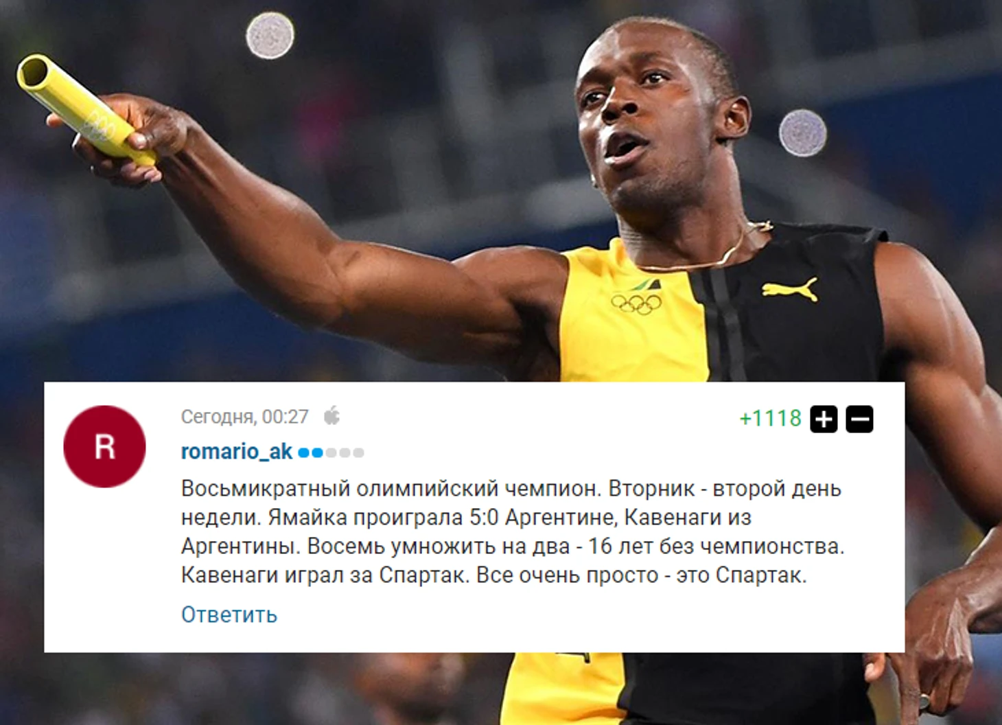 Пользователь Sports.ru romario_ak разгадал тайну: Усэйн Болт станет игроком московского «Спартака».