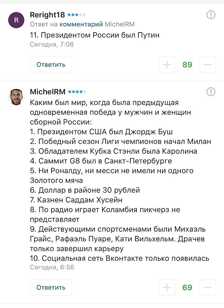 В комментариях к посту про лучшие выходные нашего биатлона пользователь MichelRM вспомнил, каким был мир, когда наши парни и девушки одновременно побеждали в биатлоне. А это, на секундочку – 2007 год: в сезоне-2006/07 Россия сделала дубль на втором этапе Кубка мира в Хохфильцене. Rerright 18 поддержал: