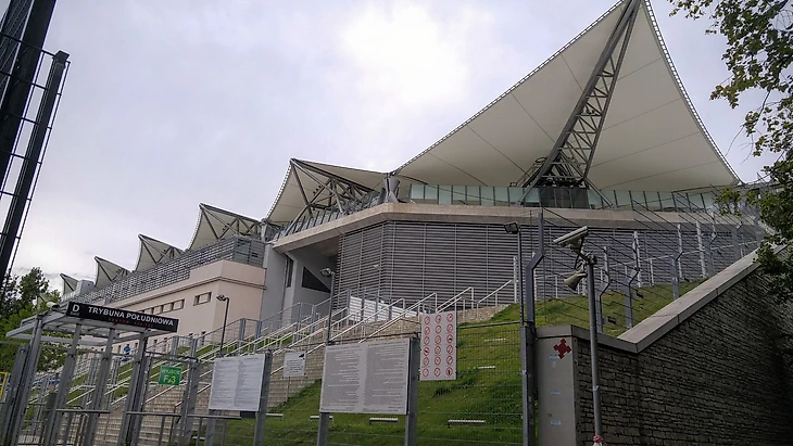 До стадиона "Войска Польского имени маршала Юзефа Пилсудского" можно добраться по-разному. Но самый живописный путь проделывают ультрас "Легии", спускающиеся по широкой лестнице к каналу с утками и попадая сразу на свой сектор.