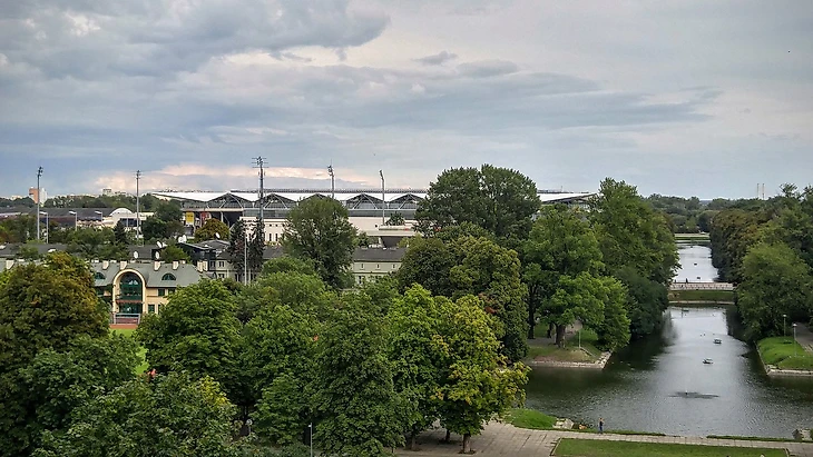 В завершении - вид со стадиона на центр Варшавы. Приезжайте в Польшу, энергетика на матчах "Легии" сумасшедшая, да и Варшава, прямо скажем, неплоха.
