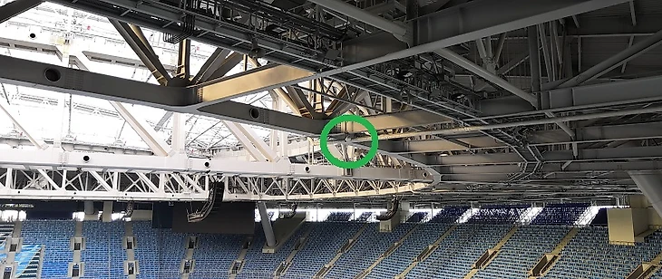 На снимке отмечена одна из антенн, покрывающая один из секторов чаши стадиона