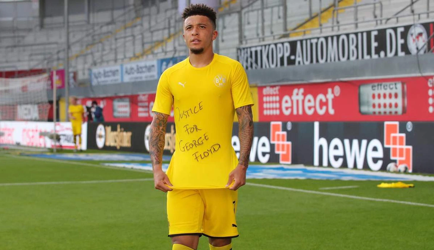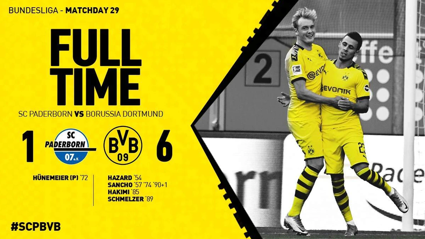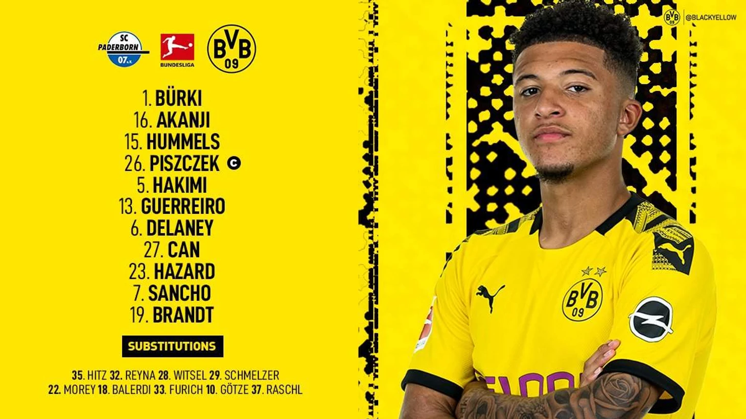 Постоянно сдерживать непрерывные атаки гостей игроки «Падерборна» не могли. И на 54 минуте Цингерле прервал прострел Джана с левого фланга, но на отскок первым подоспел Азар. Удар в пустые ворота и 0-1. На 57 минуте после короткого «сна» Брандт с левого фланга вывел на пустые ворота Санчо. 0-2. Забив гол, англичанин снял игровую футболку и остался в майке с надписью: «Justice For George Floyd» (в связи с недавними событиями в США), за что получил жёлтую карточку.