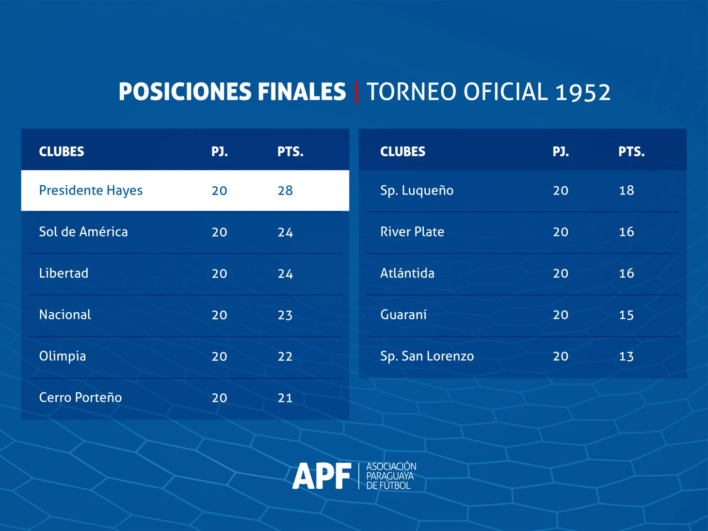 "Янкис" навсегда вписали себя в историю парагвайского футбола в 1952 году. В том году чемпионат получился очень упорным - за три тура до его окончания шансы на титул сохраняли четыре команды. Но достался он "Пресиденте Айесу" - во многом за счёт уверенной игры на домашнем стадионе "Коронель Феликс Кабрера" (в том году "янкис" не потеряли в родных стенах ни одного очка) и победе в предпоследнем туре на одним из преследователей "Соль де Америкой" (2:1). Закрепили "янкис" свой исторический успех 6 декабря 1952 года домашней победой над "Ривер Плейтом" - 3:1.