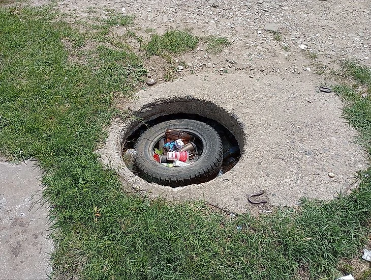 За 300 метров от парка и арены ничего не предвещает смены декораций. Иногда попадается мусор в самых неожиданных местах. Например, в старой покрышке, осмысленной как урна.