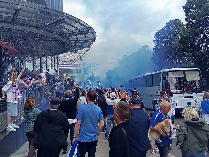 От гостиницы до автобуса образуется живой коридор – игроков обнимают, Федора Смолова вообще целуют, а в честь Хорхе Карраскаля неожиданно заряжают кричалку. Будто про легенду клуба.