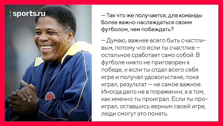 Поняли ли Матурану и его футбол в Колумбии — трудно сказать. Большие победы и большие поражения в этой стране по-прежнему превращаются в национальный катаклизм — всплеск насильственных смертей был зафиксирован и после побед в 93-м, и после поражений в 94-м.