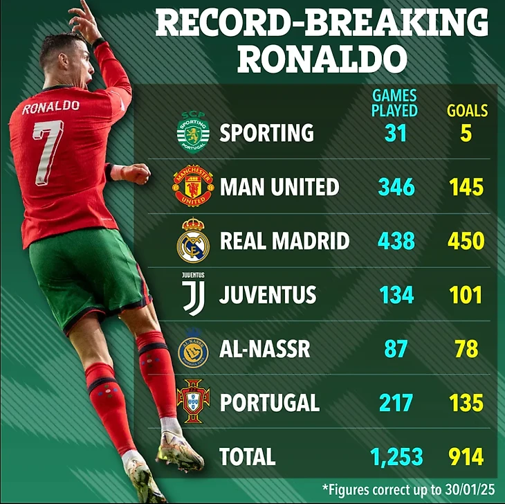 Статистика Роналду уникальна и выглядит недосягаемой.