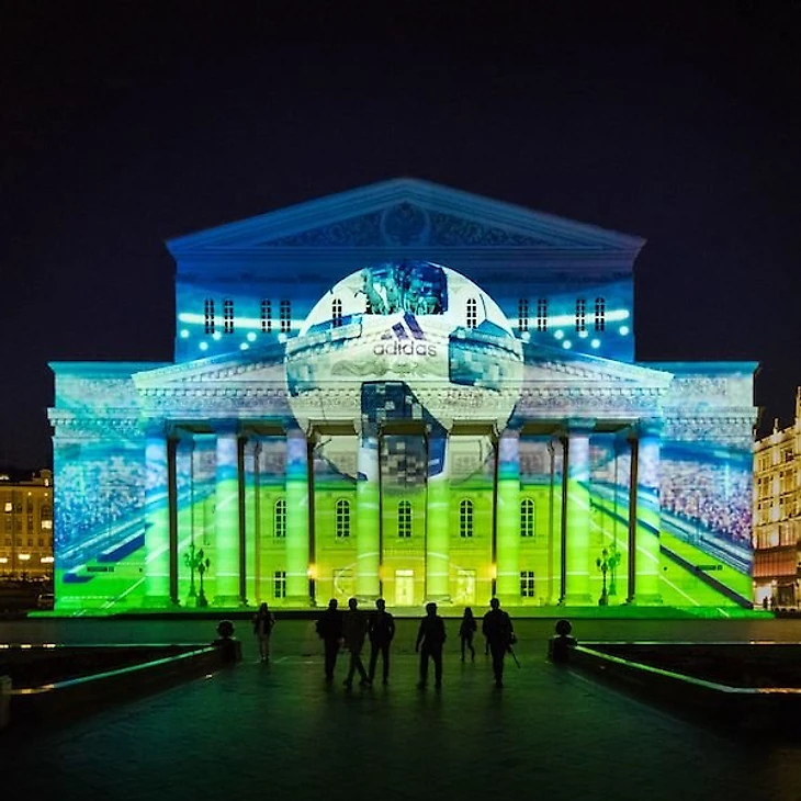 13 июня в честь старта чемпионата мира-2018 adidas подсветил фасад Большого театра уникальными проекциями о футболе. В проекционном шоу появились Алексей Миранчук и другие звезды сборной России, а также ведущие мировые игроки adidas – Поль Погба, Лео Месси, Месут Озил и другие.