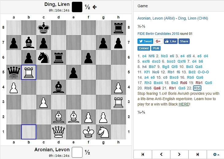 Аронян ½ - ½ Дин Лижень