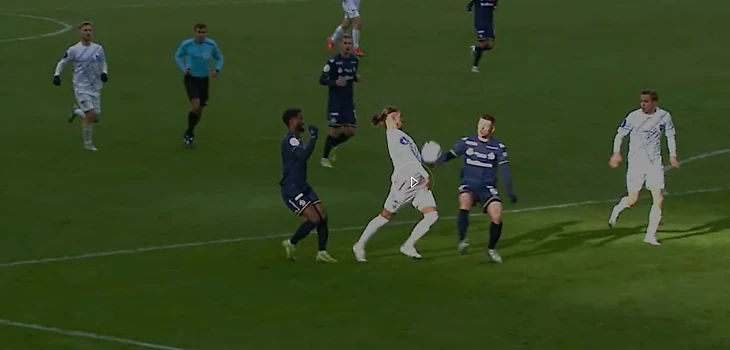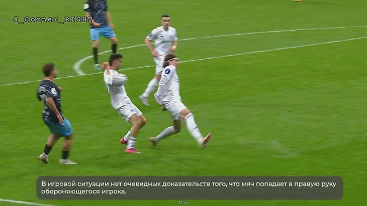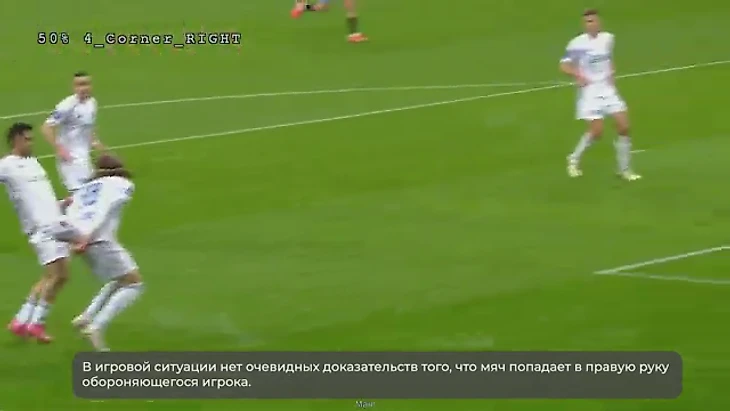 с рассчитанным на полных идиотов тексте от ЭСК. Достаточно посмотреть, куда отлетает мяч на следующем кадре - резко вниз, в выставленную ладонь второго защитника