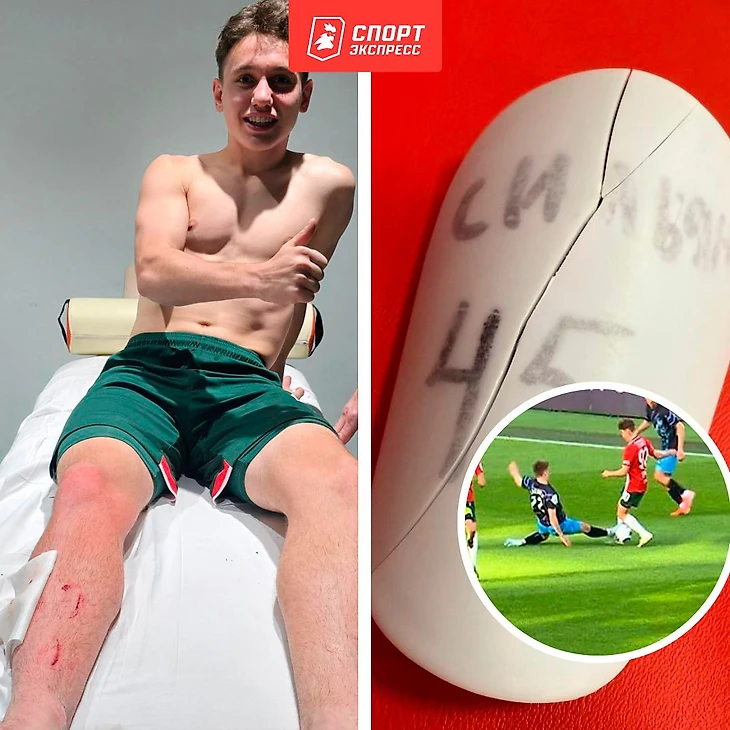 «компромата» на производителя экипировки для Локомотива: «Из чего же сделан защитный щиток, который развалился после скользящего контакта с шипами бутсы соперника и от чего он должен защищать»? Тут одно из 2: или материал не подходит для щитка, или, что вероятнее, щиток сместился набок голени и прилегал к ней боковыми краями. Другими словами, щиток не прилегал к ноге плотно, и при контакте произошел прогиб щитка внутрь, из-за чего он сломался и нанес повреждения Годяеву своими осколками. Вины с Каккоева это не снимает, просто объясняет такие странные повреждения. Ну и последняя картинка из этой игры - полный аналог разобранного нарушения Каккоева в противоположную сторону от Самошникова