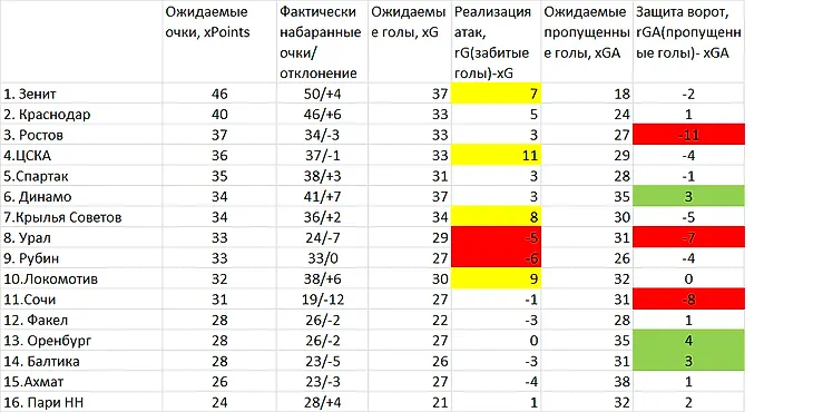 Автор belwrestler Размышления у итоговой таблицы РПЛ. Продвинутая статистика определяет все, но только у лидеров