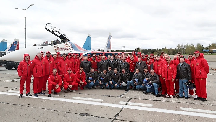 Далее сборная отправилась на военный аэродром в Кубинке, где летные группы «Стрижи» и «Русские витязи» исполняли фигуры высшего пилотажа после возвращения с парадов на Красной площади в Москве и других городах России. После приземления экипажей хоккеисты, тренеры, персонал и руководство команды пообщались с пилотами и посидели в кабинах самолетов.