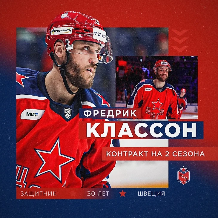 В ЦСКА защитник перебрался прошлым летом из системы клуба НХЛ «Тампа-Бэй Лайтнинг». Сейчас в активе Классона 40 игр в чемпионате КХЛ и 12 (3+9) очков при показателе полезности «+1». Ранее защитник также играл за «Сан-Хосе», «Оттаву», «Рейнджерс» и «Нью-Джерси». Всего на его счету 170 матчей в НХЛ, в которых он набрал 28 (7+21) очков. В 2012 году вместе со сборной Швеции Классон стал победителем молодежного чемпионата мира.