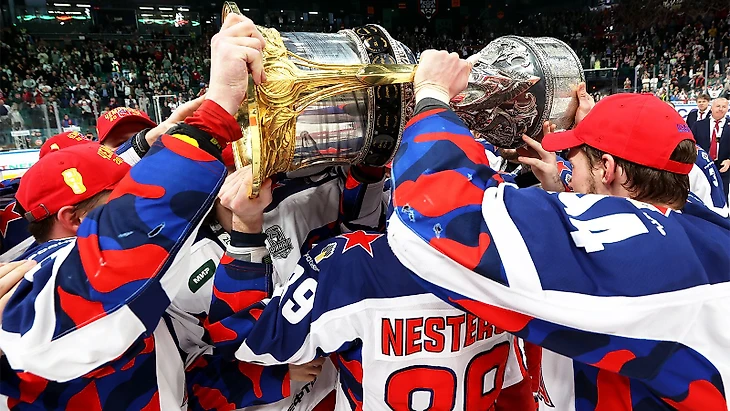 В прошедшем сезоне армейцы второй раз подряд выиграли главный трофей Континентальной хоккейной лиги.