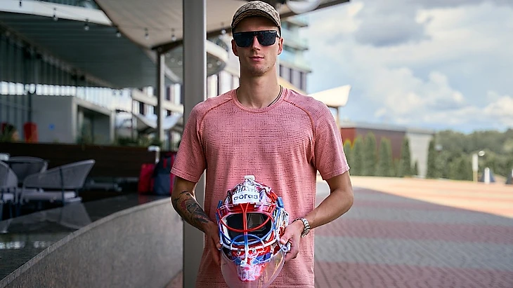 Вратарь ХК ЦСКА Иван Просветов на сборах в Минске продемонстрировал новый шлем: с российским триколором и клубными цветами, а также изображением легендарного Владислава Третьяка.