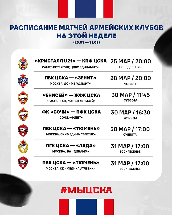 Автор ААГ Все матчи армейских клубов на этой неделе!