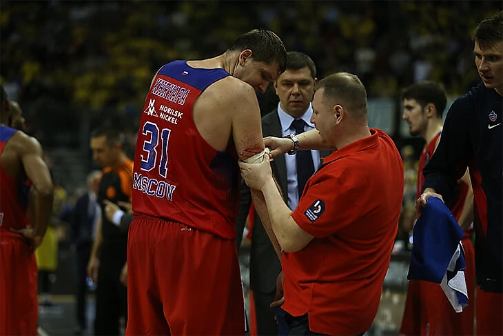 Квалификация к Евробаскету-2015, последний матч мы играем в Италии. Выигрываем – выходим, проигрываем – не попадаем на финальный турнир. Встреча проходила в Кальяри, и мы туда, на Сардинию прилетели заранее – дня за два или три. Как-то раз пошли всей командой на пляж, взяли волейбольный мяч, стали в круг – играем. Среди нас был Тимофей Мозгов, который с волейболом на «вы». Ему пасуют – он отбивает криво. Бегу, спасаю, сохраняю мяч в воздухе. Он снова отбивает неудачно. Бегу – а там камень, то ли кусок бордюра, то ли край асфальта. Ударяюсь ногой, чувствую – стопа немеет, причем вся в песке. На пятке ковыляю до моря, окунул – все щиплет, кровь льется. Пробил дыру между большим пальцем и подошвой. А на носу – самая важная игра. Замотал ногу, прыгнул в такси, звоню Роме: «У меня проблемы, выручай». Захожу к нему в номер, показываю. Он: «Ё… Антон, как так? Вы что делаете? Сыграть не сможешь!» Говорю: «Делай, что хочешь, я должен играть». Хорошо, у нас ближайшая тренировка была легкая, восстановительная, я терпел, хотя нога отваливалась. Не знаю, как, но за два дня Рома поставил меня на ноги. Рана затянулась, мы все переклеили, придумали специальную стельку. В общем, я вышел на паркет, мы победили, а я сыграл один из лучших своих матчей за карьеру в сборной (68-72, Понкрашов – 22 очка, 8 передач. – прим.). Об этой истории до сих пор никто не знал.