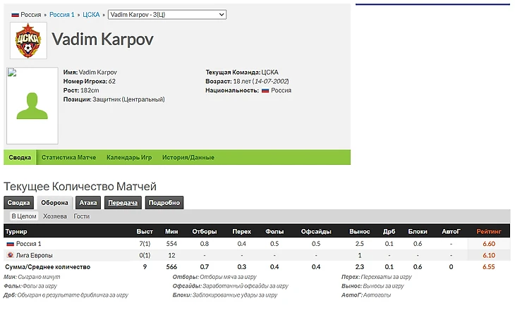 Игрок отбирает матч на уровне исландца, но намного меньше перехватывает мяч. Фолов кстати тоже меньше. Но мы все помним о том, что Карпов по-прежнему очень молод, а следовательно ему свойственны ошибки, в том числе результативные, которые накладываются на и без того не самую сильную игру армейцев в позиционной обороне. Игрок довольно часто теряет позицию.