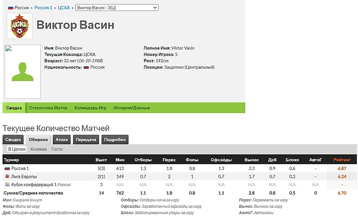 Но у хорватского тренера есть еще один кандидат на вакантную позицию, а именно Виктор Васин. Вот его статистика