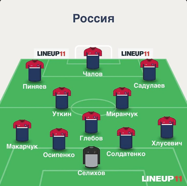 Карпин решил поберечь основных для матча с Узбекистаном, поэтому выпустил в этой встрече не самый сильный состав. Во втором тайме вместо Селихова вышел Песьяков, но уже на 53 минуте после неудачного наступа получил травму и его поменял Шунин. Вместо Миранчука вышел Захарян, вместо Чалова Сычевой. И уже под конец игры вместо Садулаева появился Мостовой и вместо Пиняева вышел Фомин.