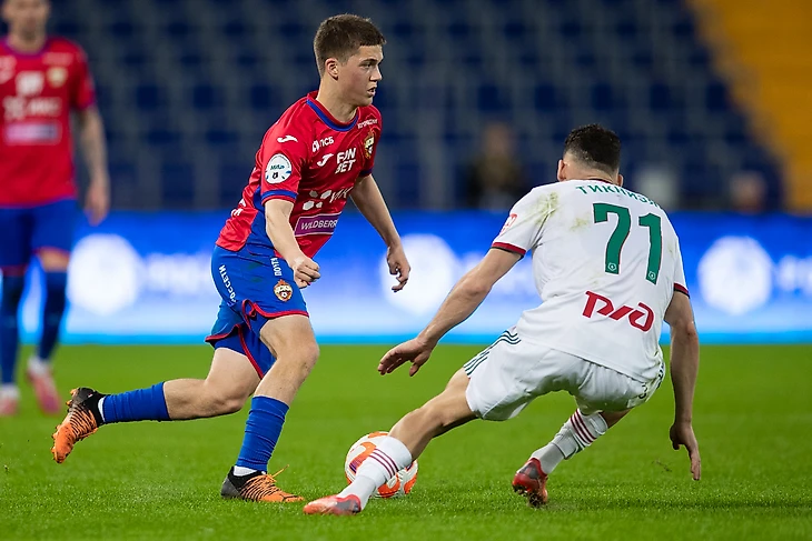 Как и предполагалось железнодорожники начали активно и создали первый опасный момент в этой игре – Пиняев хорошо убежал, перекинул Акинфеева и попал в штангу. Далее армейцы смогли перевести игру от своих ворот и начали штурмовать ворота Лантратова. Голкипер гостей справился с двумя дальними ударами Чалова и Облякова, а также Ваня пробил чуть выше ворот. Случился важный эпизод в игре – Пиняева поменяли из-за травмы и вместо него вышел Митай, который вскоре станет антигероем матча. Давление красно-синих только росло и после классного навеса Облякова, мяч подхватил Заболотный и пробил классно в угол, открыв счет в матче.