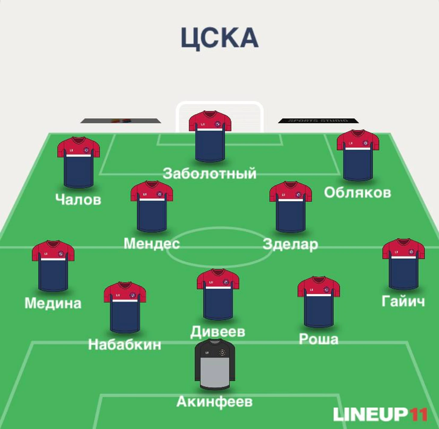Вместо молодого Агапова, Федотов в старте решил использовать Набабкина. И также в старте появился Медина, но неожиданно на позиции левого латераля.
