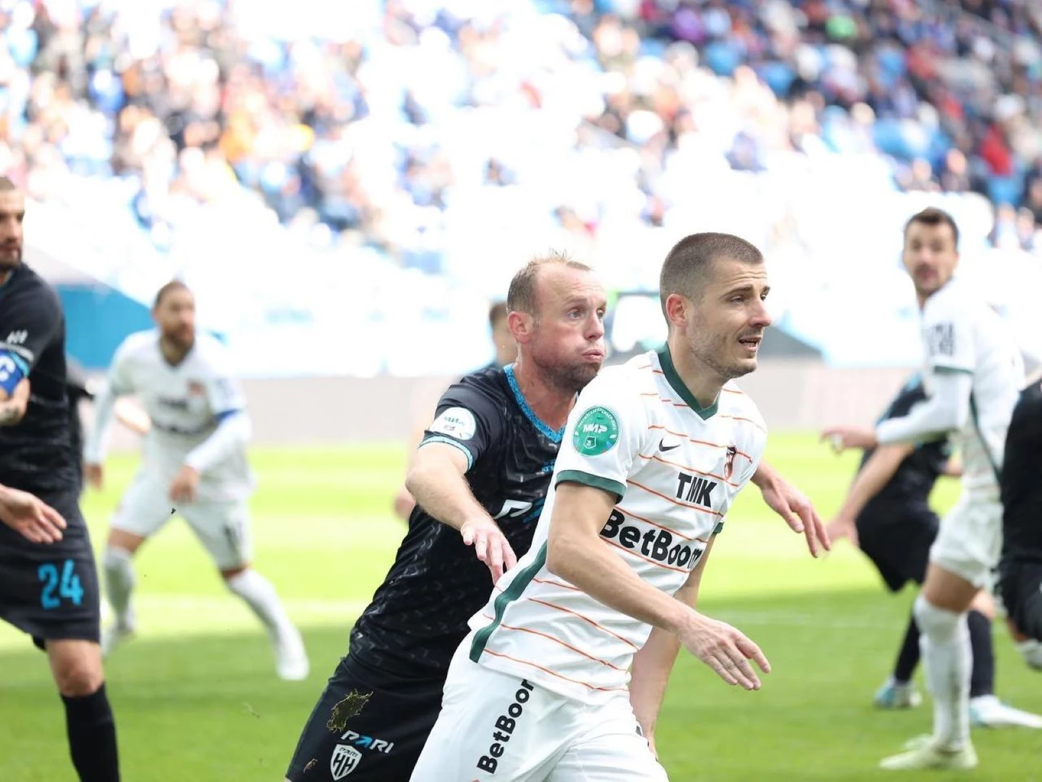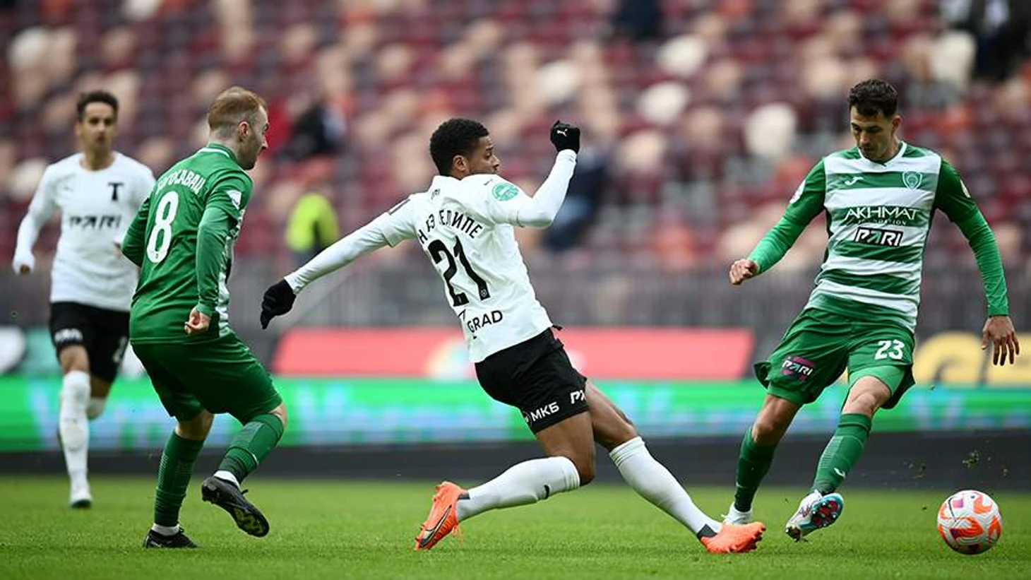 Атаки гостей никак не заканчивались и голов могло быть много, но часто выручал Бабурин вместе со своими защитниками. И все же голевая феерия продлилась – после подачи с углового произошла скидка, которую замкнул Камилов. Далее подопечные Ташуева чуть расслабились и начали играть от обороны и пропустили мяч в середине второго тайма – после навеса Стефанович классно кивнул головой и красиво перекинул Шелию. Этот пропущенный мяч разочаровал всю чеченскую команду, которая стала часто выбегать в контратаки и таким образом забили свои голы Конате и Агаларов.