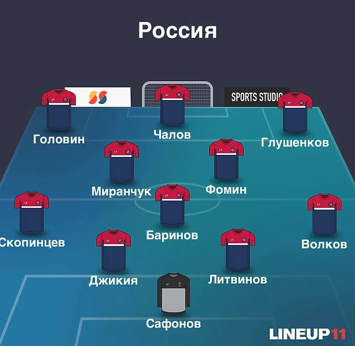 Как бы не любил Карпин Глебова, но на поле выйдет в основе Баринов, который более опытен и лучше играет, чем ростовчанин. В центре поля ему помогут Фомин и Миранчук. В атаке на острие будет находится Чалов, а ему помогут Головин с Глушенковым.