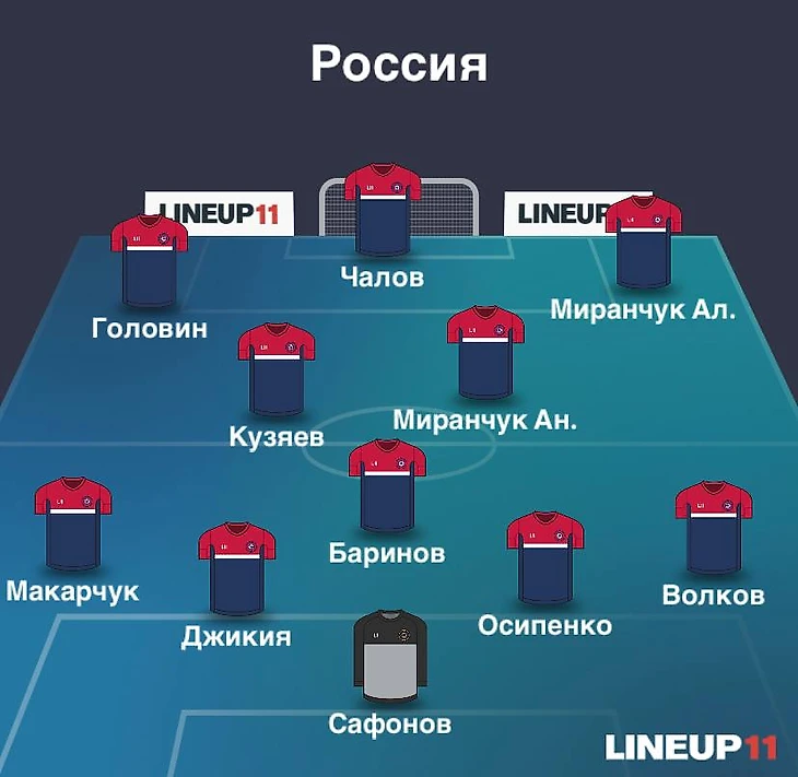В опорной зоне выйдет Баринов, а чуть выше расположатся Кузяев и Антон Миранчук. На краях атаки появятся наши легионеры Головин и Алексей Миранчук, а наконечником будет Чалов.