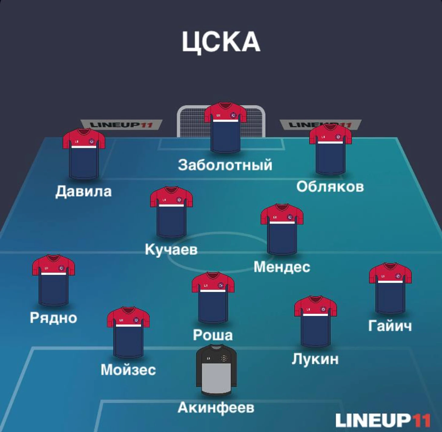 Центр поля составили Мендес и Кучаев. Константина потом сменил Кисляк, а во втором тайме Кучаев поменял Мендеса. Атакующую тройку составили Давила – Заболотный – Обляков. Антона поменял Мусаев, Чалов Облякова, а потом Ваня сменил Давилу.