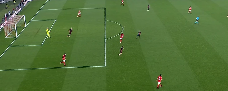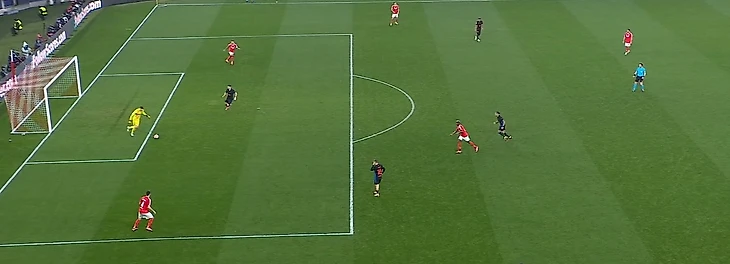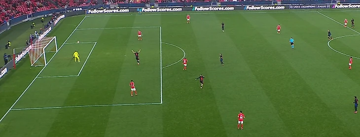 Такие нелепые голы обычно происходят у любителей игр в футбольные симуляторы. Трубин пытается сделать среднюю передачу на своего игрока, но погода вносит свои коррективы. Вратарь «Бенфики» попадает не так как надо по мячу, он летит в голову Рафиньи и аккуратно, парашютом залетает в ворота.