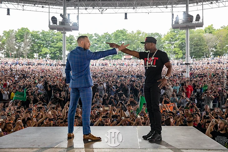 Никому больше не нужны сухие официальные речи, официальных представителей, на официальных мероприятиях. Жалкие попытки Шоутайм сделать традиционную боксерскую прессуху были жестко посланы любимым выражением мистера МакГрегора. Бокс стремительно несется в один загон со скачками, куда приходят только солидно одетые старперы и дамы в нелепых шляпках! Никто уже так не делает и Дана Уайт хорошо показал это на контрасте с чтением по бумажке главного менеджера Стивена Эспиносы. Да кто такой этот Эспиноса и тот другой, длинный? Дайте нам Конора! Дайте нам больше ярости, энергии и жестокости!