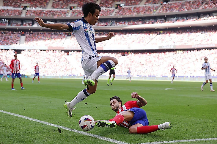 Для Кубо уже огромный комплимент, что Симеоне обратил на него такое внимание – и просил вообще не оставлять Таке в ситуациях один в один. Лино справлялся, но ему всегда помогали либо Гризманн, либо Де Поль. Иначе никак – Кубо юркий, с низким центром тяжести, легко уходит от соперника.
