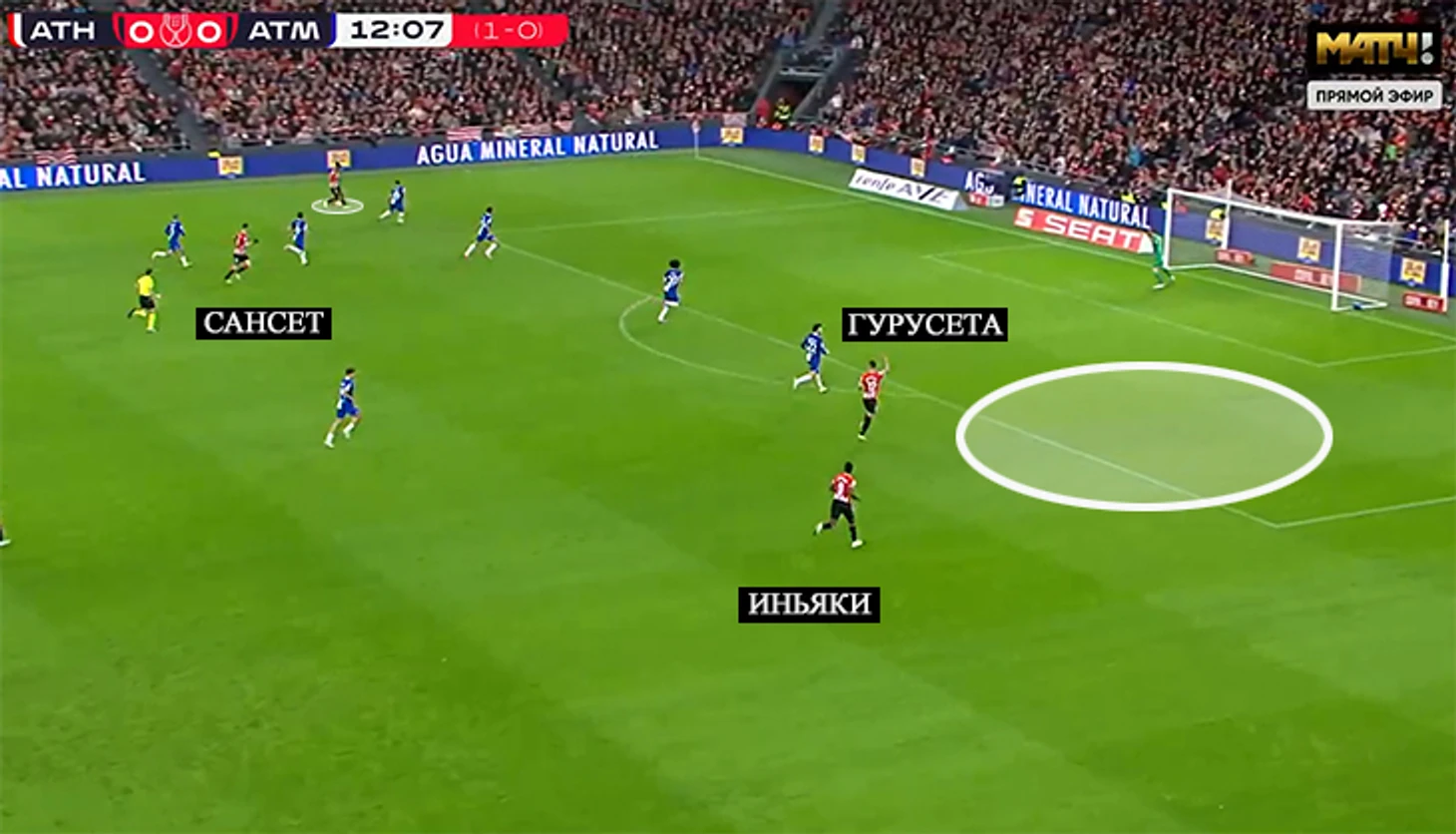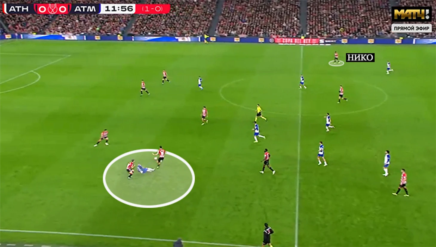 Он знает, когда начинать прессинг, и дает двойной объем без мяча: например, часто идет направо, пока вперед лезет Иньяки. Еще одна задача Ойана – перегруз флангов: за счет рывков в полуфланги создает пространство Нико или Иньяки, сам тоже достаточно техничен.