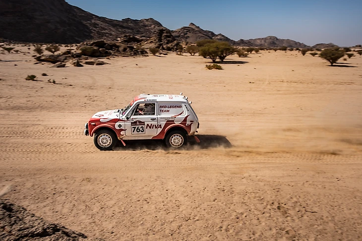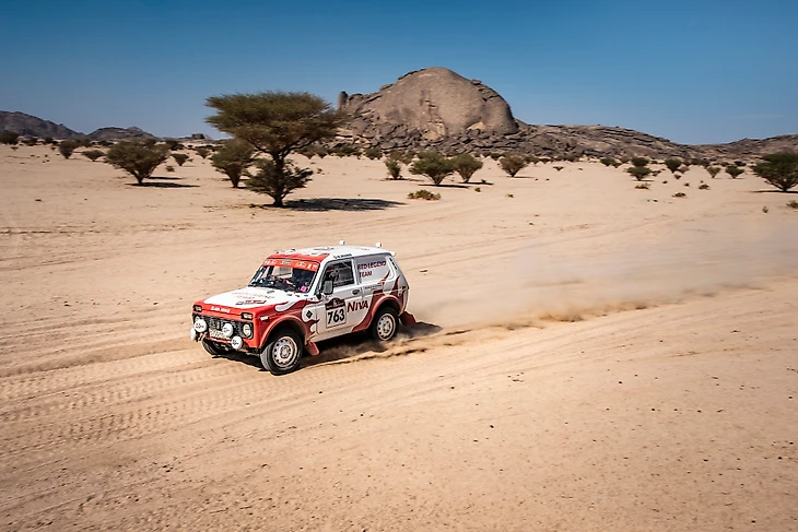 Из двух оставшихся в строю внедорожников "Нива" выше — на 109-м месте — в протоколах значатся француз Ромен Грабовски и его подруга Констанция Шенар на машине №791, а на 116-й позиции идёт экипаж в цветах Niva Red Legend Team швейцарцев Марио Якобера и Сладана Мильича.