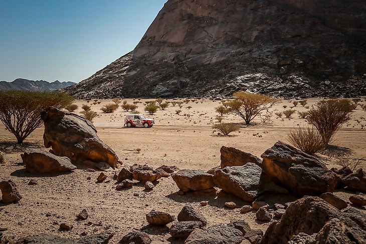 Но вот два оставшихся советских внедорожника борьбу продолжают! На 9-м этапе швейцарцы Марио Якобер и Сладан Мильич показали 111-е время, а на две позиции выше, на 109-й строчке протоколов, по итогам дня оказались французы Ромен Грабовски и Констанция Шенар.