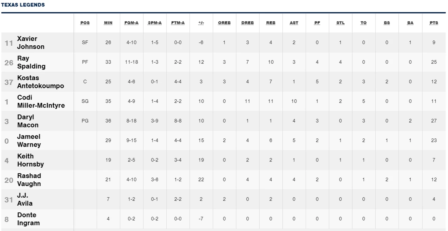 За время с написания предыдущего поста об игре в G League наша команда провела 2 матча. Оба с Зведами Солт-Лейка (фарм клуб Юты). Первый матч(поражение) был на выезде и его я не посмотрел(поэтому ничего рассказать про него не смогу), а второй уже дома. Как и в прошлом посте я не буду сильно углубляться в игру и ограничусь лишь общими комментариями по игре + статистика и хайлайты. Я это делаю потому, что полезного для основной команды там крайне мало, но там трудятся пара ребят на 2-х сторонних контрактах, 1 на полноценном и еще пара с перспективами оказаться в основной. Ссылка на бесплатный просмотр игры прилагается.